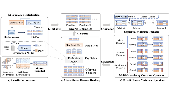 Computing Circuits Optimization via Model-Based Circuit Genetic Evolution